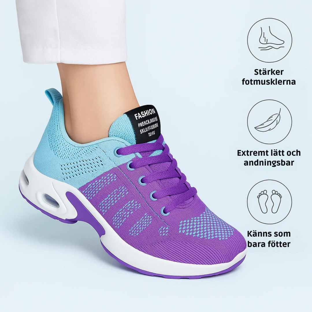 ✔ Ovandel – Ventilerande mesh som håller fötterna svala och torra.